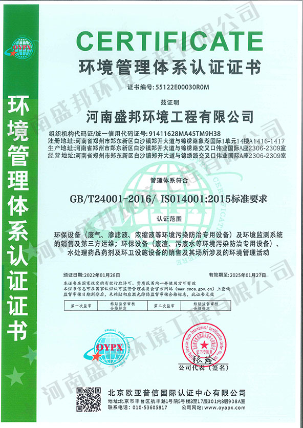 環(huán)境管理體系認(rèn)證證書(shū)
